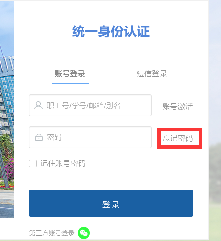 对于绑定了手机号码、邮箱的用户,如果忘记密码,可以点击认证登录界面“忘记密码”,输入工号、身份证号进行身份验证。随后通过预留的手机号码、邮箱等信息找回密码。