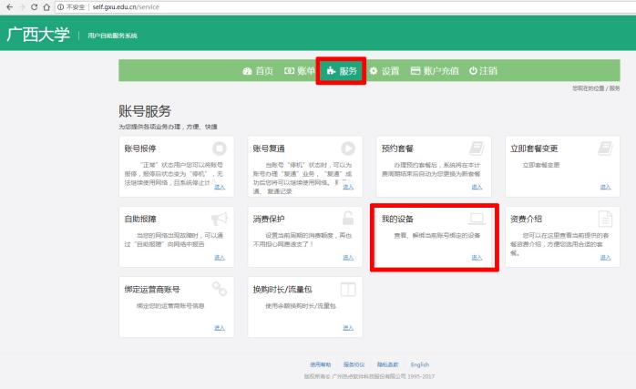 图8 自服务系统首页“服务”—>“我的设备”—> “进入”