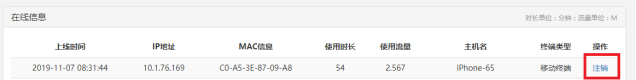 图2 在线设备的注销界面