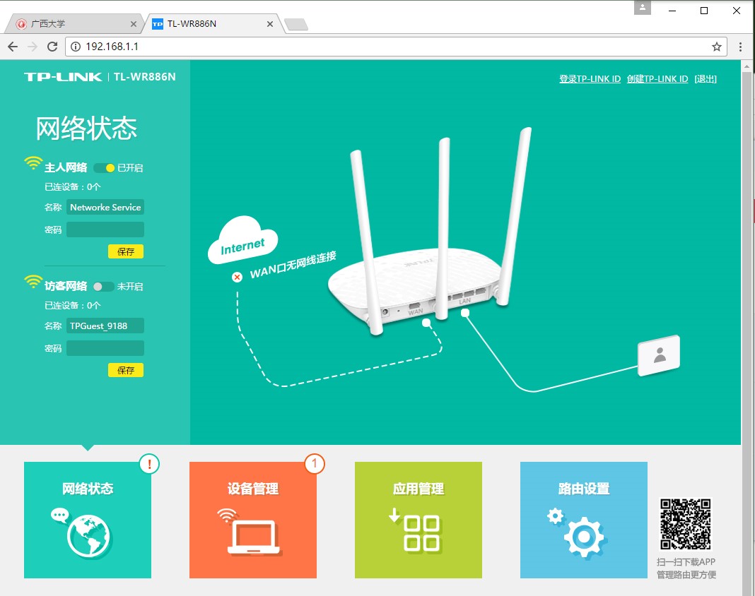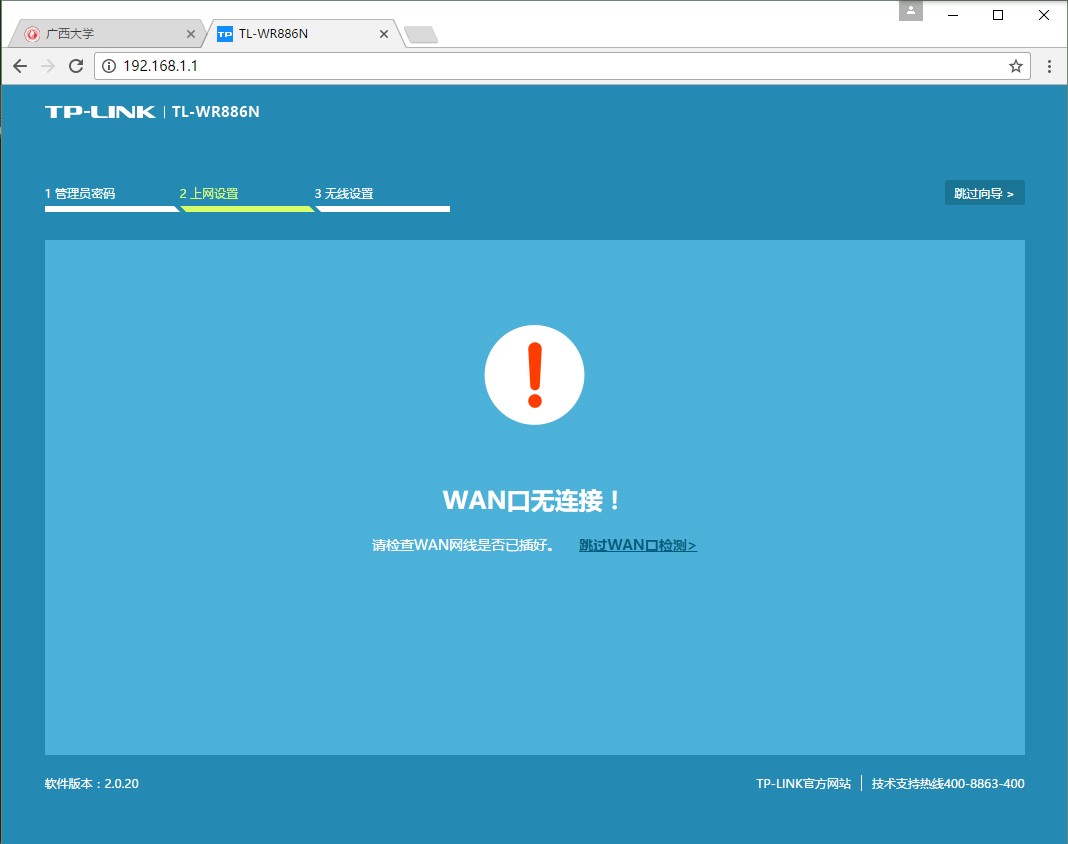 1. 连接:将网线连接起电脑和路由器,路由器端选择接任意一个lan口即可,打开浏览器,输入路由器的地址,不同的路由器有着不同的地址,(tp-link:192.168.1.1,小米:192.168.31.1,华为:192.168.3.1,腾达:192.168.0.1,360路由器:192.168.1.1水星Mercury:192.168.1.1,磊科:192.16.1.1)具体详情请看路由器背面的说明。这里用tp-ling路由器为例.