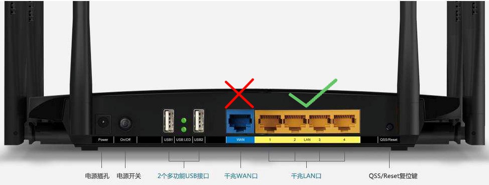 7. 非pppoe上网的连线方式:输入线勿接路由器的wan口,输入线和输出线都接在lan口。