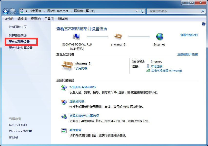 单击“更改适配器设置”