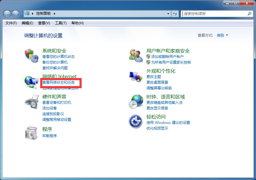 在控制面板中单击“查看网络状态和任务”