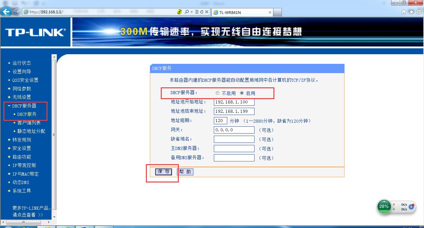始地址和结束地址,用户不需要另外配置,点击“保存”按钮完成DHCP设置。