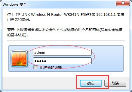 在窗口中输入用户名和口令(TP-LINK路由器的用户名为admin,口令默认为admin,若用户曾经更改过口令,则使用更改后