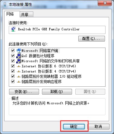 单击确定按钮。屏幕将返回到“本地连接属性”窗口。