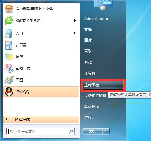 单击开始菜单中的“控制面板”