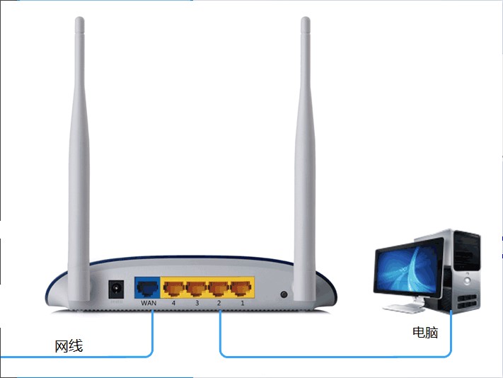 2、将PC机的网络接口连接到路由器的内网口(LAN口)。