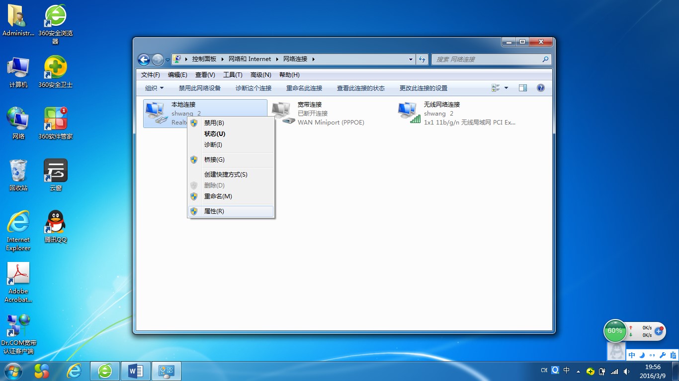 右键单击“本地连接”