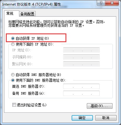 重复步骤二“设置本机IP地址”,将本机IP地址设置为“自动获取IP地址”