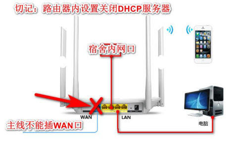 注:网线是插到路由器的【LAN】口而非路由器的【WAN】口!路由器上有【WAN】或【LAN】标识,请大家注意一下。