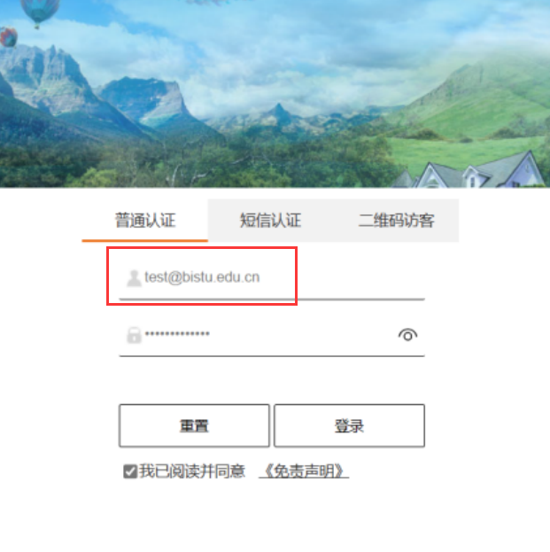 在弹出的登录页面中输入本人的统一身份认证账号+@gxu.edu.cn、对应的密码登录。