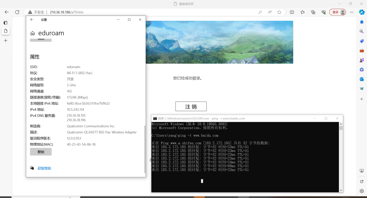 提示成功后,即可使用该校的宽带网络上网。