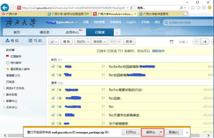 2. 点击窗口下方弹出的【保存】按钮,将messages_package.zip文件保存到本地磁盘的文件夹中,如图五所示。