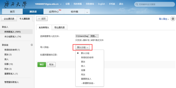 通过以上步骤的操作,就可以将被迁移邮箱的通讯录迁移到要保留的邮箱中。