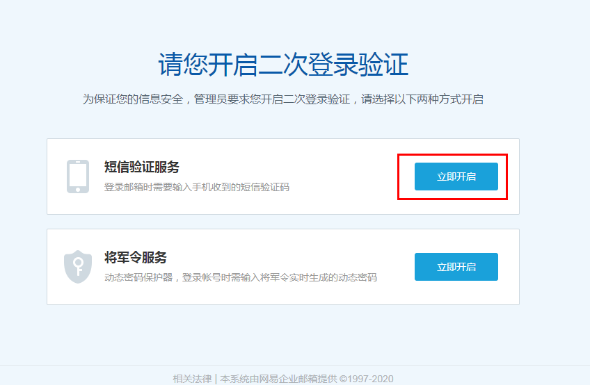 第二步:进入开启二次登录验证界面,选择【短信验证服务】点击立即开启