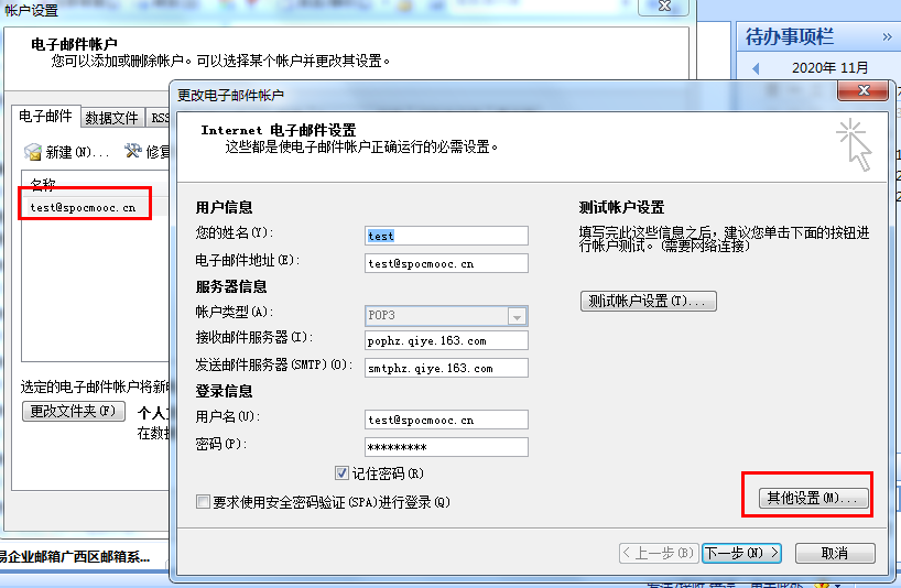 第二步:进入账号设置界面,双击【账号】,进入更改电子邮箱账号界面,选择【其他设置】