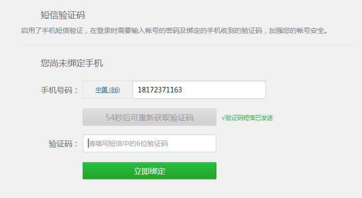 第三步:输入手机号码,点击【免费获取验证码】,输入验证码后,点击【立即绑定】,再点击【马上启用】