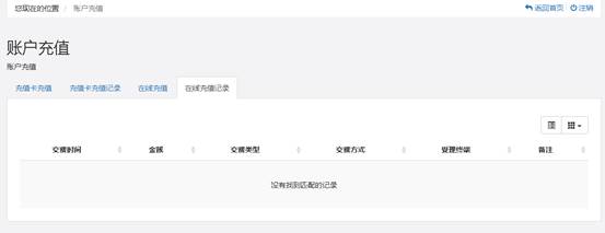 1) 点击自服务首页“注销登录”上方的的“账号充值”,可直接进入在线充值界面