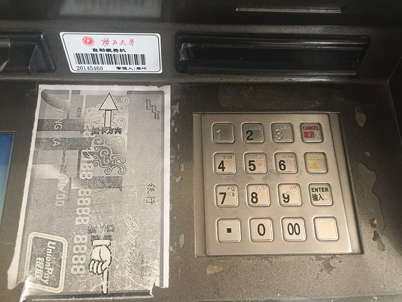 D 自助缴费机缴费——仅支持银联卡缴费,不接受现金。自助缴费机在网络大楼一楼大厅右侧,共两台。