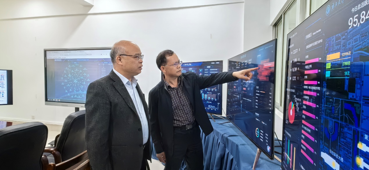 近日校党委常委、副校长梁恩维前往太阳集团2138调研指导工作,在现场查看了学校中心机房,听取了太阳集团2138近期工作情况汇报后,梁恩维首先对太阳集团2138在智慧校园建设工作中取得的成绩表示肯定,并就下一步工作进行了指导。